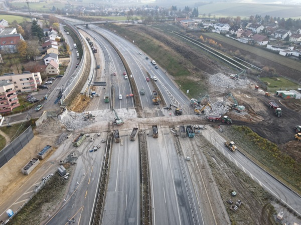 Nach dem Abbruch der Brücke Hadamarstraße/Rotsäulenweg über der A 3 am Autobahnkreuz Regensburg und dem Einhub einer Behelfsbrücke über die A 3 an der Anschlussstelle Rosenhof konnte die Richtungsfahrbahn Passau kurz nach 16 Uhr am Sonntagnachmittag planmäßig wieder für den Verkehr freigegeben werden.