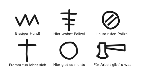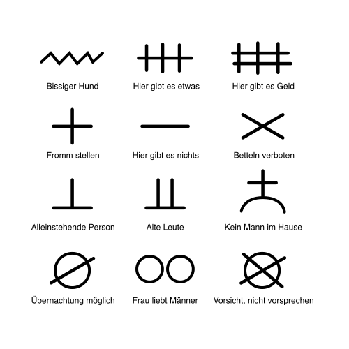 Auch Bettler und arme Leute nutzen solche Zeichen als Verständigung, um anzuzeigen, in welchen Häusern beispielsweise großzügige Menschen leben.