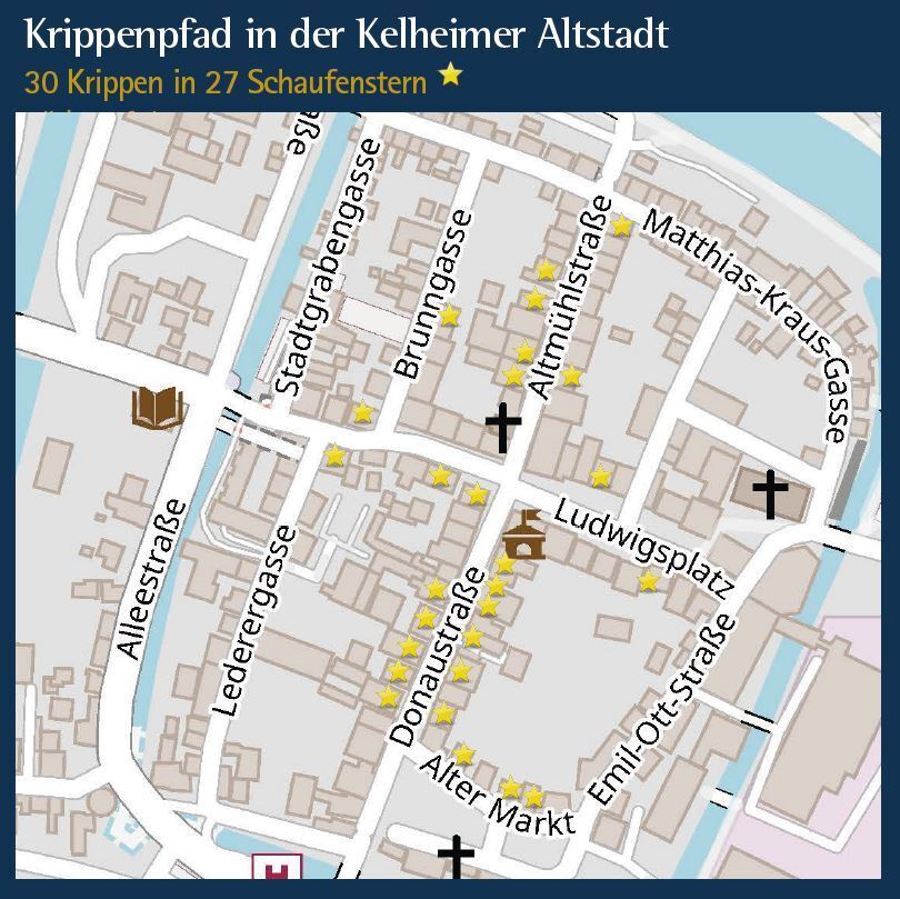 So ganz ohne Weihnachtsstimmung will man auch in Kelheim trotz Corona nicht sein: Statt einem Weihnachtsmarkt hat die Stadt einen Krippenpfad durch die Altstadt auf die Beine gestellt. 30 Krippen in den Schaufenstern der Einzelhändler laden zu einem Weihnachtsbummel ein. Zusätzlich ist heute von 17 bis 20 Uhr Lichternacht. Die Geschäfte haben bis 20 Uhr geöffnet, Nikolaus und Weihnachtsengel schauen in der Innenstadt vorbei, es gibt Lebkuchen, Punsch, Straßenmusik und natürlich viele viele Lichter.