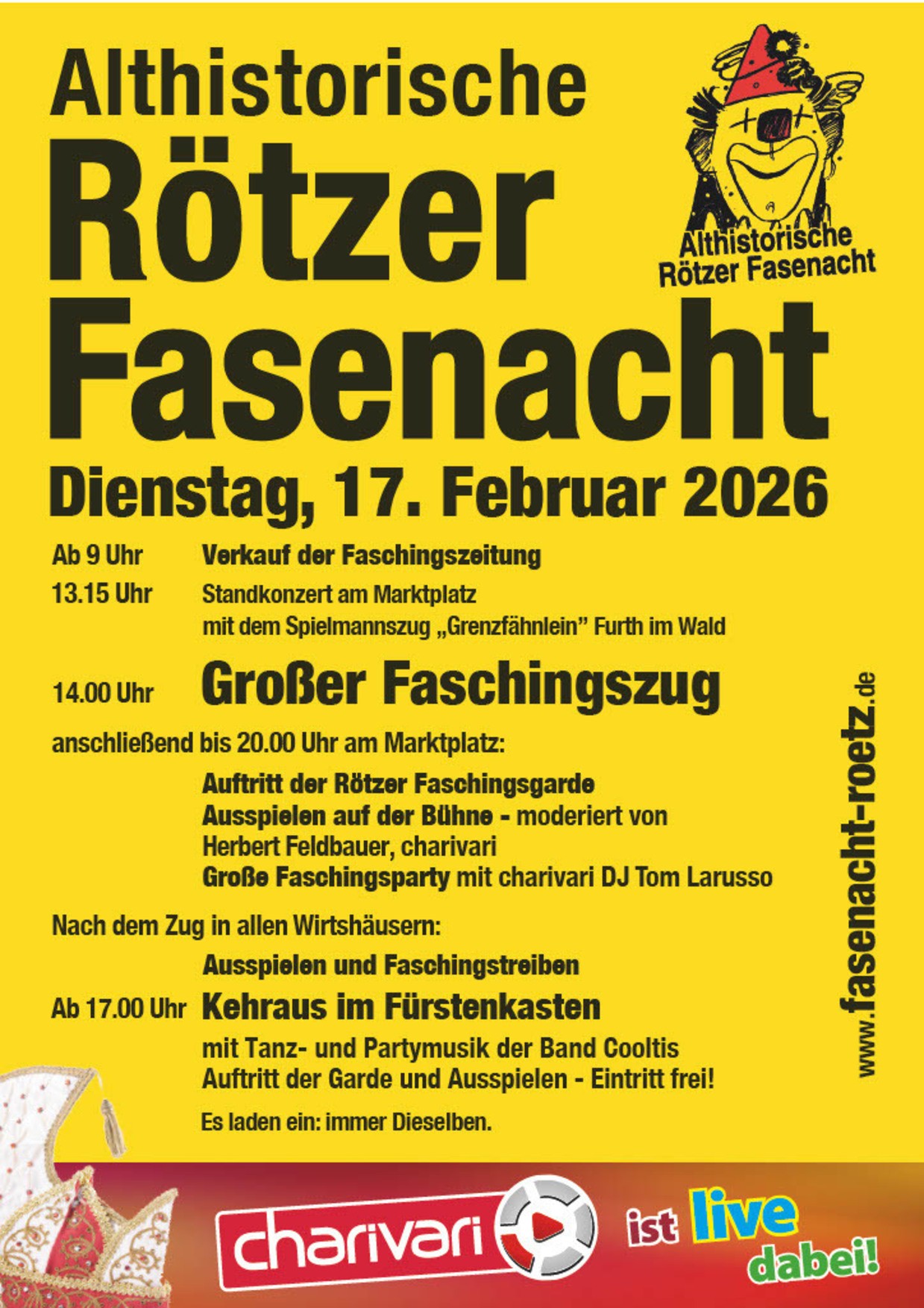 - Der GROßE Faschingszug in Rötz am 17. Februar 2026! -