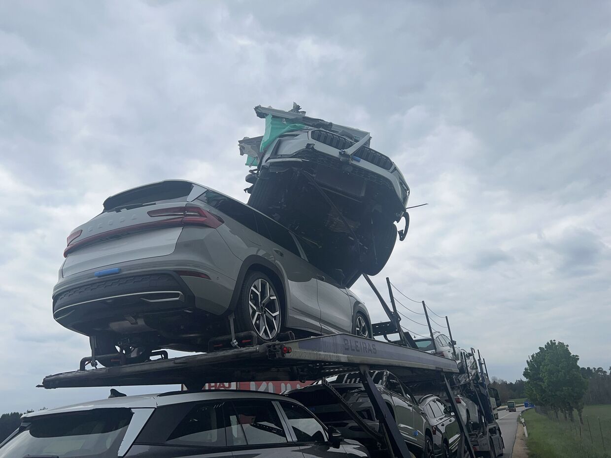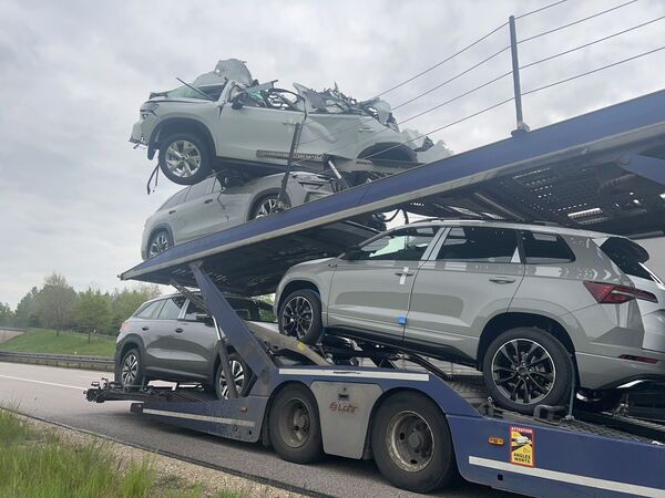 Dem Fahrer eines Autotransporters ist am Donnerstag früh auf der A 6 bei Waidhaus ein übler Fehler passiert. Er hat vergessen, das Oberdeck seines Transporters nach einer Pause wieder runterzufahren. Dadurch war der LKW viel zu hoch als normal, das ganz vorne und ganz oben stehende Auto ist an der Brückenunterseite hängengeblieben und auf ein zweites geladenes Auto geschoben worden. Beide sind zum Glück nicht vom Transporter gefallen, so dass niemand verletzt wurde. Der Schaden an Autos und LKW wird auf 100.000 Euro geschätzt, der Brücke fehlt nichts. Die A6 war wegen Bergungsarbeiten teilweise gesperrt.