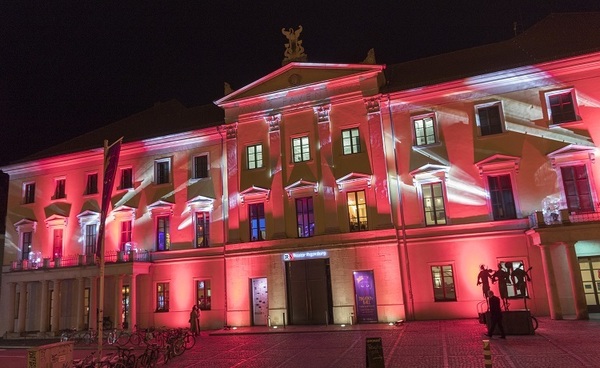 Wenn heute, a Mittwoch-Abend viele Leute auf dem Bismarckplatz hier in Regensburg stehen und zum Theater schauen, dann ist wieder Balkon-Singen. Bei der Veranstaltung vom Theater Regensburg stehen ein Mal pro Monat Sängerinnen und Sänger auf dem Balkon des Theaters und präsentieren tolle Musik, umsonst und draußen. Heute Abend, ab 21:30 Uhr, ist der Balkon sehr voll – der Cantemus Chor tritt dort auf, zum ersten Mal, dreißig Sängerinnen und Sänger. Das Publikum auf dem Bismarckplatz hört dann Stücke von Mozart bis Musical.