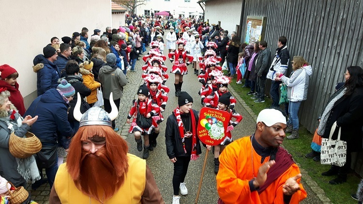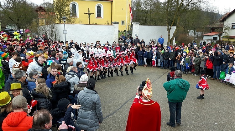 Auch die Fußgruppen, vor allem die Sarchinger Tänzerinnen, erhalten viel Jubel von den Faschingsfans.