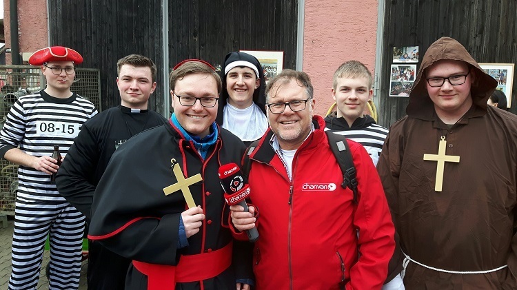 Ein gesegntetes Faschingsfest, wünscht „Bischof Rudolf“. charivari-Reporter Robert Huber mit kirchlichem Segen im Einsatz.