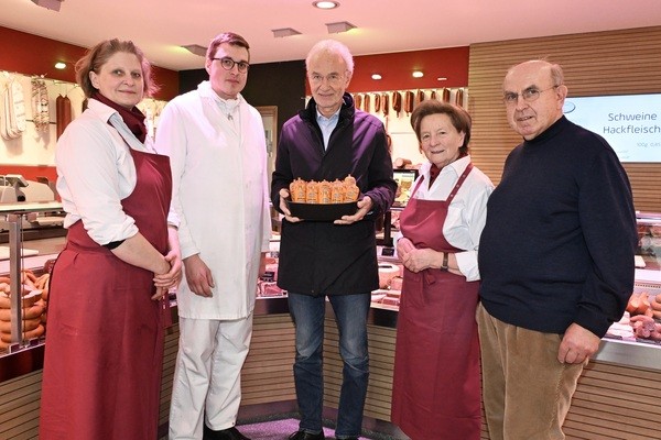 Wenn´s um die Wurscht geht, hilft eine Wurscht: Mit dem Verkauf von Gelbwurst spendet die Regensburger Feinkost-Metzgerei Schmid seit fast zwei Jahrzehnten an die Leukämie-Hilfe Ostbayern – ziemlich erfolgreich. In den vergangenen 17 Jahren sind so rund 46.000 Euro zusammen-gekommen. Die Idee für die Leukämiehilfe-Benefiz-Gelbwurst hatten der Gründer der Leukämiehilfe, Professor Reinhard Andreesen und Metzgermeister Gerhard Schmid bei einem gemeinsamen Gang nach Altötting im Jahr 2006. Seitdem spendet die Metzgerei Schmid einen Euro pro Gelbwurst an die Leukämiehilfe Ostbayern. Bis jetzt sind über neun Tonnen Gelbwürste für diesen guten Zweck über die Metzgerei-Ladentheke gegangen, aneinander-gereiht über fünf Kilometer Wurst.