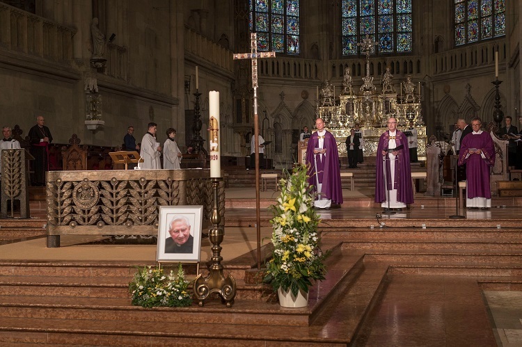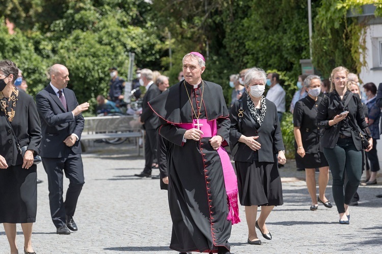 Mit einem Requiem im Regensburger Dom haben heute rund 200 Menschen Abschied genommen von Georg Ratzinger. Die Mehrzahl waren Prominente aus der Region wie Fürstin Gloria oder geistliche Würdenträger, darunter die Kardinäle Reinhard Marx und Gerhard-Ludwig Müller. Bischof Rudolf Voderholzer und Erzbischof Georg Gänswein hielten die Totenmesse. Gänswein dankte sichtlich gerührt im Namen von Benedikt dem Sechzehnten für die vielen Briefe und Mails der Anteilnahme, die er nach dem Tod seines Bruders bekommen hatte. Der zurückgetretene Papst verfolgte die Trauerfeier per Internet in Rom. Gegen 13 Uhr wurde Georg Ratzinger auf dem Unteren Katholischen Friedhof in Regensburg beigesetzt.