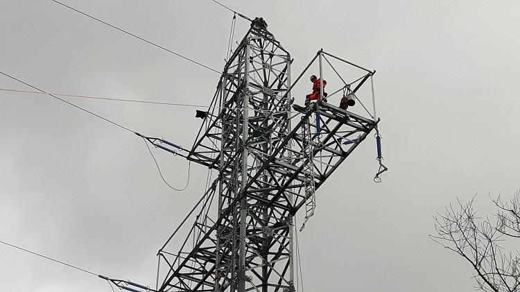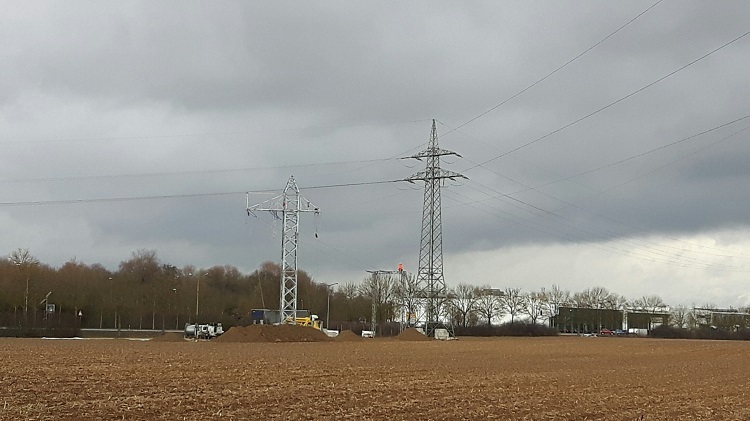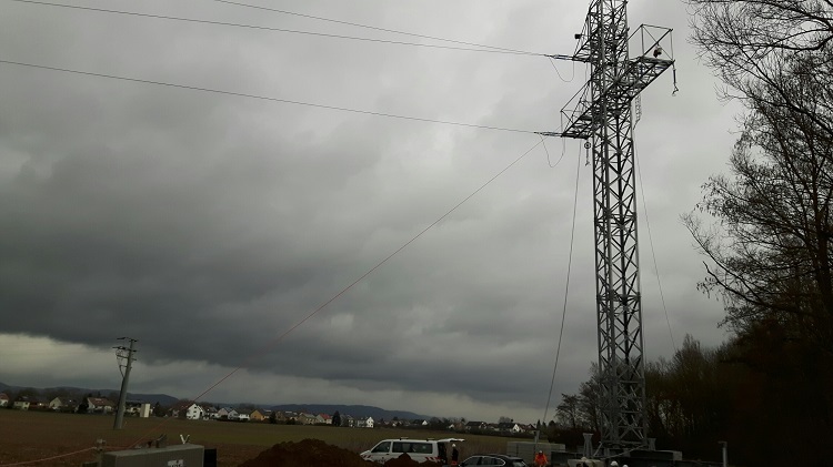 Zwei 40 Meter hohe Strommasten mussten für die Ersatzleitung aufgebaut werden. Dabei handelt es sich um mobile Masten.