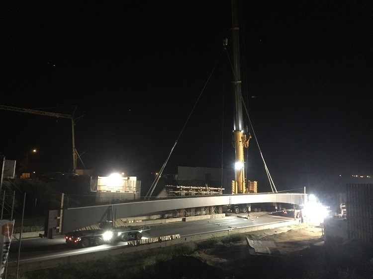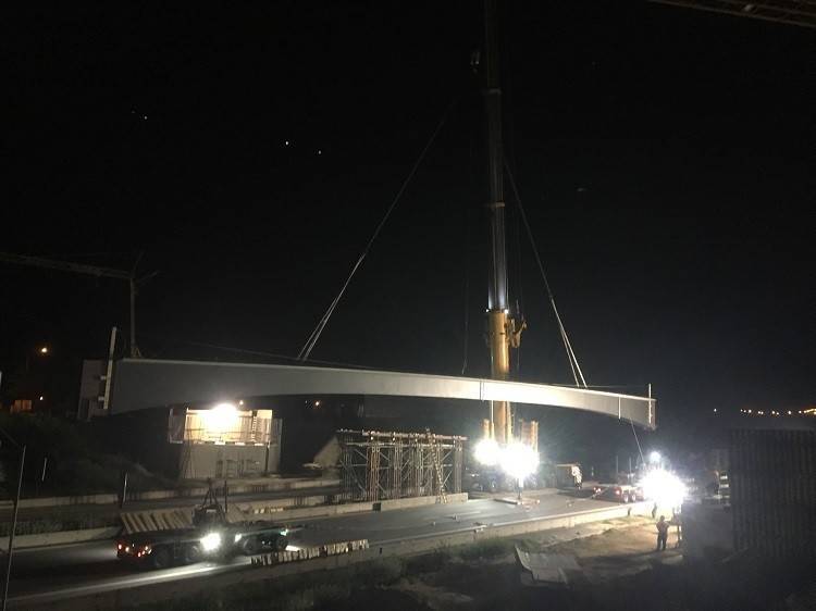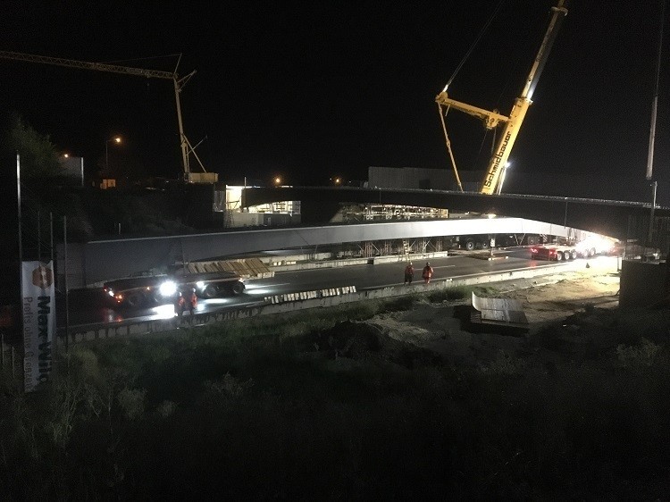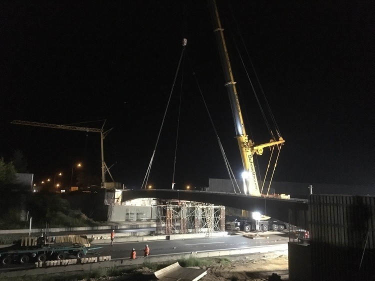 In der Nacht von Samstag auf Sonntag wurden die Träger für die Brücke Markomannenstraße auf der A3 eingehoben. Die Bauarbeiten, um fünf der jeweils 70 Tonnen schweren Träger einzuheben, dauerten bis Sonntag 5:30 Uhr. Pro Träger wurden jeweils 1 1/2 Stunden zum Montieren eingeplant. Ein 500-Tonnen Kran hat zuerst die drei mittleren Träger eingehoben, um dann die beiden äußeren Teile aus Stahl und Beton anzubringen. Die Reihenfolge ist dabei wichtig, da die Außenträger schwerer zu montieren sind. Nach der Montage der Träger, musste im Anschluss noch die Fahrplatte verschraubt und die Fugen geschlossen werden.