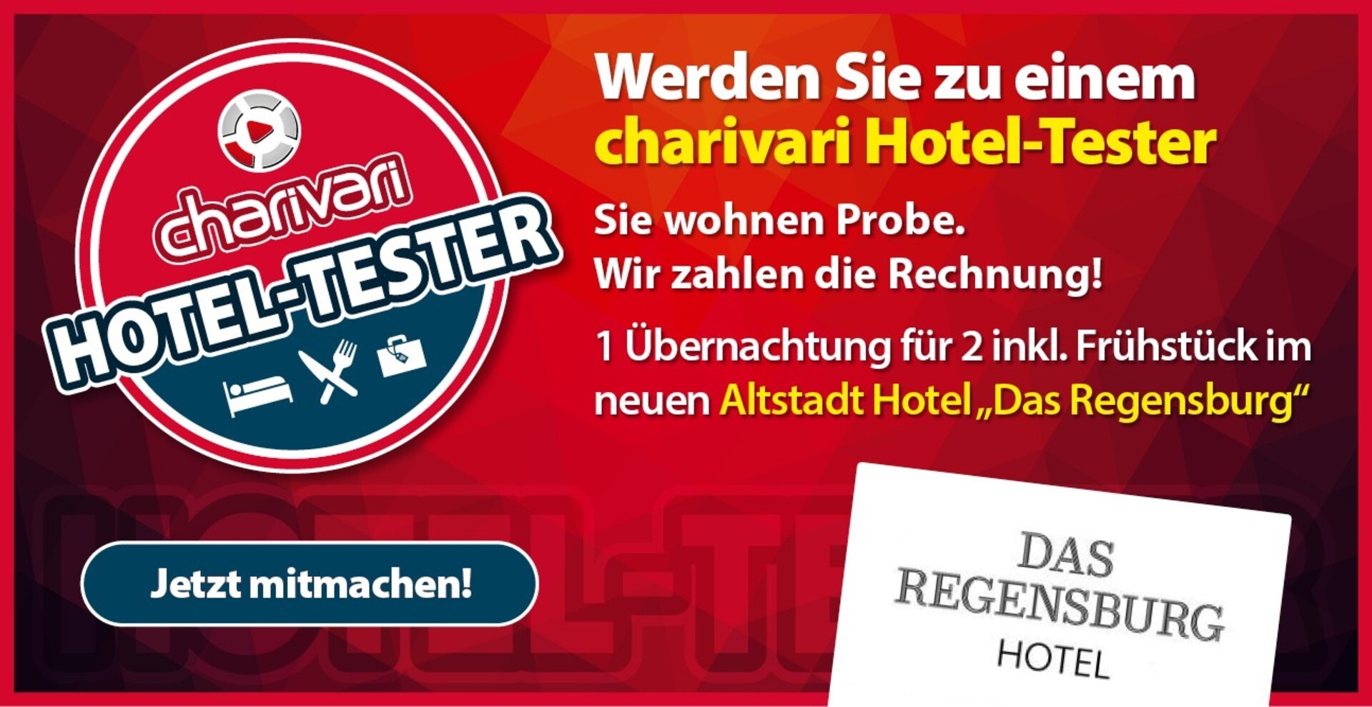 Mit der Teilnahme an dem Gewinnspiel "charivari Hotel-Tester", das von charivari (Funkhaus Regensburg GmbH & Co. Studiobetriebs KG – Lilienthalstraße 3 c – 93049 Regensburg, vertreten durch den Geschäftsführer Martin Schelauske) durchgeführt wird, erkennt der Teilnehmer/die Teilnehmerin ausdrücklich und verbindlich die nachfolgenden Teilnahmebedingungen an. Das Gewinnspiel wird in Kooperation mit dem Hotel „Das Regensburg“ durchgeführt.