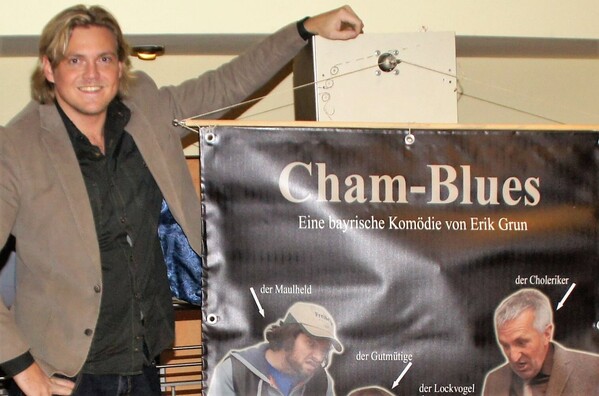 Herbert Feldbauer aus dem Charivari-Team wird zum Filmproduzenten. Gemeinsam mit dem Regensburger Regisseur Erik Grun hat er jetzt eine Komödie in Cham gedreht. Sie heißt „Cham-Blues“. In dem Film setzt ein cholerischer Chef einen jungen, blonden Lockvogel auf seinen treulosen Mitarbeiter an. Und die Dinge nehmen ihren Lauf.