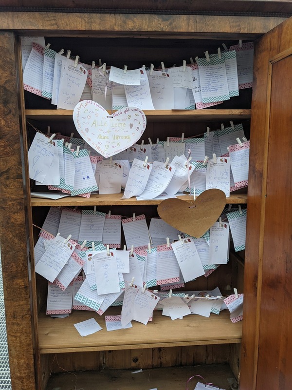 Es hat etwas mit dem Herzenswünscheschrank hier in Riedenburg, im Landkreis Kelheim, zu tun. Julian, 7 Jahre alt, hat auf seinen Wunschzettel geschrieben, dass es im Januar gaaaaanz viel schneien soll, damit er endlich wieder so richtig schön Schlitten fahren kann! Und der Wunsch ist in Erfüllung gegangen! Barbara Bauer von der Tourist-Info Riedenburg hat diesen besonderen Wünscheschrank jetzt geleert. Er stand einige Wochen lang auf der Riedenburger Seebühne – mit großem Erfolg! 260 – zum Teil selbstgebastelte – Wunschzettel hingen am Ende in dem alten Holzkleiderschrank.