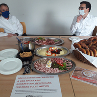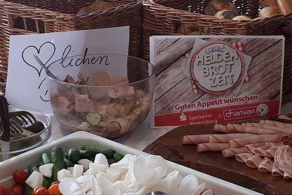 charivari und die Sparkasse Regensburg sagten "DANKE!" Diese CORONA-HELDEN haben sich über HELDEN-BROTZEITEN sehr gefreut - lecker Essen geliefert haben wir an die HELDEN-Teams vom AWO Sozialzentrum in Regendorf, vom Elisabethenheim in Schwandorf, vom Zoll in Waidhaus, von der Molkerei Bechtel in Schwarzenfeld, von der EDEKA-Metzgerei in Cham, von der Zahnarztpraxis Dr. Höchbauer aus Roding, vom Taxi Baumann aus Regensburg, vom STRABAG TEAM auf der A3 bei Regensburg, von der Landwirtschaft Schmidt in Velburg/Lengenfeld, vom Netto in Wörht an der Donau, vom Krankenhaus der Barmherzgen Brüder, vom ZSP Parsberg, von der Zahnarztpraxis Dr. Herrmann aus Regensburg, des Gesundheitsamtes Neumarkt der Stadt Apotheke in Parsberg, der Rettungswache Bruck, von BMW Vögl in Cham, von KUNO Regensburg, von POOL-Systems in Winklarn und von Spedition Groitl in Roding.