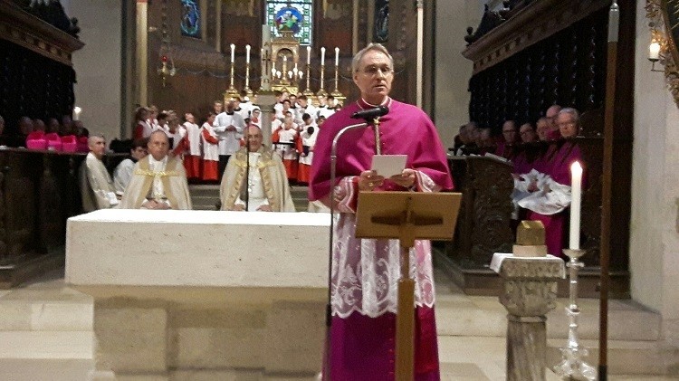 Der Sekretär von Benedikt XVI., Erzbischof Georg Gänswein überbringt die Grüße von Papst Benedikt.
