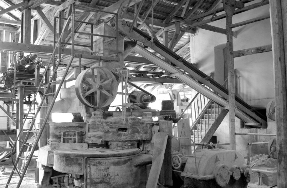 Errichtet 1909 kurz nach der Industrialisierung der Kalksandsteinproduktion, Umbauten 1922/1958. U.
