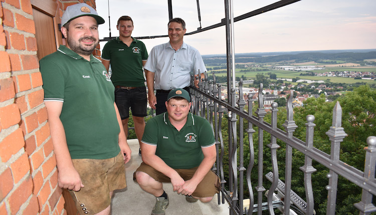 Es liegt in 26 Metern Höhe und erstrahlt jetzt in neuem Glanz. Der Schlossbergturm in Regenstauf hat ein neues Dach bekommen. Das war auch dringend nötig, seit Jahrzehnten ist nie das komplette Dache erneuert worden, sondern immer nur kleine Bereiche, die z.B. undicht waren. Das Sturmtief Sabine hat das Dach im Februar allerdings so schwer beschädigt, dass es nun quasi rundum erneuert werden musste.