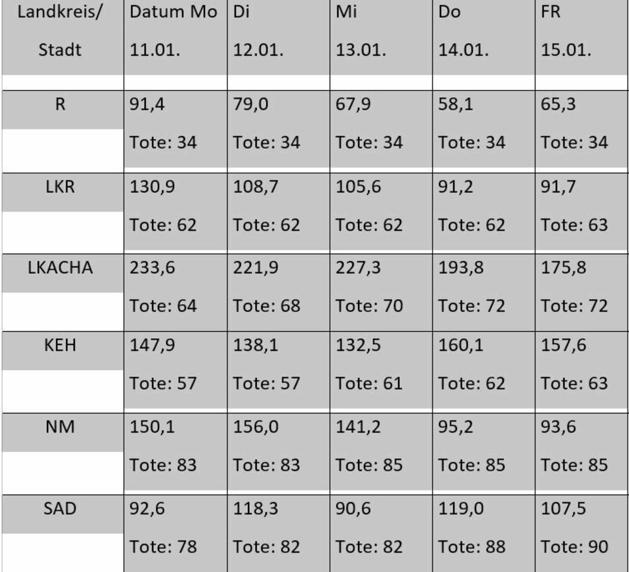 Die aktuellen Inzidenz-Werte aus der Region 15. Januar 2021 6:09 Die Inzidenz-Werte aus dem Sendegebiet laut Robert-Koch-Institut: