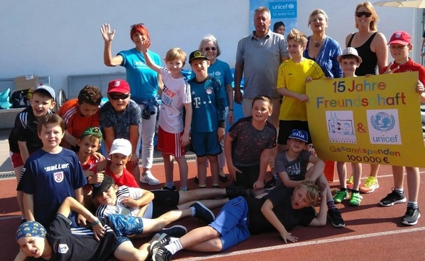 Die Schüler der Regensburger Domspatzen haben als „Junior-Botschafter für Kinderrechte“ 3.100 Euro an die Regensburger Unicef übergeben. Die Spendensumme wurde beim bundesweiten Schülerlauf der Unicef „errannt“. Denn für jede gelaufene Runde gab es Geld. Damit unterstützen die Domspatzen „Schulen für Afrika“. Durch die fleißigen Sportler werden Projekte in Afrika unterstützt. Das Geld wird unter anderem für den Bau eines sturmsicheren Schulgebäudes gebraucht oder für den Kauf von neuen Schulmaterial.