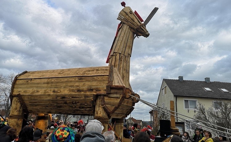 Ein Highlight des Umzugs war das Trojanische Pferd der Diesenbacher Burschenschaft
