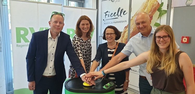 Um die Information für ÖPNV-Kunden deutlich zu verbessern, nahm RVV-Geschäftsführer Kai Müller-Eberstein am 28. Juni im Beisein von Landrätin Tanja Schweiger, Bürgermeisterin Getrud Maltz-Schwarzfischer, Vertreterinnen der Regierung der Oberpfalz und Bahnhofsmanager Walter Reichenberger ein neues dynamisches Fahrgastinformationssystem im Bahnhofsgebäude in Betrieb.