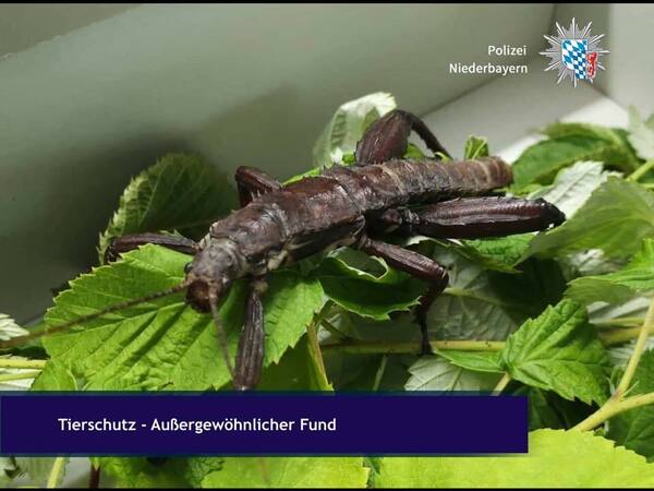 Auf einem Spielplatz in Abensberg im Landkreis Kelheim hat ein Bub ein exotisches Insekt gefunden, eine Riesendorn-Gespenstschrecke. Sie ist etwa zehn Zentimeter lang, völlig ungefährlich und kommt eigentlich nur in Asien vor. Wie das Insekt auf den Spielplatz gelandet ist, dazu vermutet Kurator Ludwig Fischer vom Tiergarten Straubing folgendes: Der Besitzer hat das Insekt in einem Terrarium gehalten und beim Austausch von Blättern versehentlich herausgenommen. Die Mutter des Finders hat die Riesendorn-Gespenstschrecke zur Polizei Kelheim gebracht, von dort ging es über die Polizei Straubing in den Tiergarten Straubing. Dort kann das Insekt vorübergehend bleiben. Einen Namen hat es nicht bekommen, so der Kurator. Dazu gebe es im Tiergarten einfach zu viele Insekten.