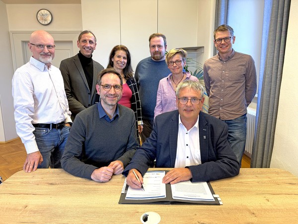 Bildtext: Wollen künftig gemeinsam Fachkräfte für Hemau gewinnen – vorne (von links): Dr. Martin Niederauer (Match Pflege), Herbert Tischhöfer (Erster Bürgermeister Stadt Hemau). Hinten (von links): Roland Weiß (Wirtschaftsförderer Landkreis Regensburg), Dr. David Rester (Projektleiter „Sorgende Stadt Hemau“), Birgit Renner (Sozialraumentwicklung Paraplü), David Fries (Blindeninstitut Hemau), Manuela Galietto (Lebenshilfe Wohnstätte Hemau), Christian Scheuerer (BRK SeniorenWohnen Hemau). Nicht im Bild, aber Teil der Fachkräfteallianz: Caritas Alten- und Pflegeheim St. Michael.