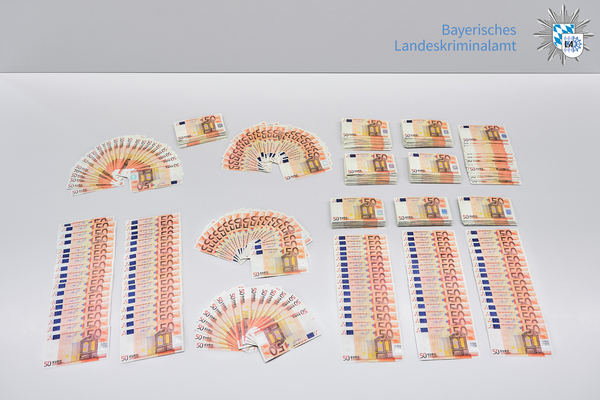 Die Polizei hat in Kelheim zwei mutmaßliche Geldfälscher geschnappt und 90.000 Euro Falschgeld sichergestellt. Eine 30-jährige Bulgarin wollte Ende September in einem Supermarkt mit einem falschen 50-Euro-Schein bezahlen. Die Kassiererin erkannte die „Blüte“ und alarmierte die Polizei. Die fand später in der Wohnung der Frau und ihres Bruders weitere 1.800 falsche „Fuchziger.“ Die beiden wurden in zunächst U-haft genommen, die Frau ist aber wieder frei.