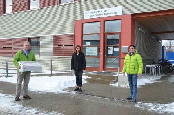 Nicht nur die Kolleginnen und Kollegen vom Corona-Impf- und Testzentrum kamen in den Genuss eines Krapfens, sondern auch zahlreiche weitere Arbeitnehmerinnen und Arbeitnehmer in Stadt und Landkreis Regensburg. Denn neben Landrätin Tanja Schweiger beteiligten sich auch Oberbürgermeisterin Gertrud Maltz-Schwarzfischer, das Polizeipräsidium sowie etliche Firmen, Kanzleien, Behörden, Ämter, Kliniken und Arztpraxen an der Schlemmeraktion für einen guten Zweck. Die Spendensumme in Höhe von 4.000 Euro fließt übrigens in die Anschaffung eines Klettergerüsts für körperbeeinträchtigte Kinder am Pater-Rupert-Mayer-Zentrum.