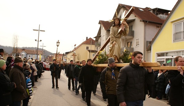 Die Prozession beginnt um am Palmsonntag, 09.04.2017 um 14.00 Uhr. Begleitet von drei Musikkapellen werden den Besuchern vor Augen geführt – das Abendmahl, Christus am Ölberg, die Gefangennahme, die Geißelung, Verspottung, Christus als Kreuzträger, die Kreuzigung, Christus im Schoß der Mutter (Pieta), die Grablegung, die Auferstehung, dazu der Einzug in Bethanien, die fünf Wundmahle und das „Kreuz von heute“.