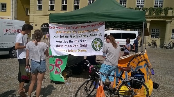 24 Stunden am Stück wollen sie für die Umwelt präsent sein, von fünf nach zwölf am Freitag bis fünf nach zwölf am Samstag: Eine Mahnwache der Fridays for future kampiert mit Zelten und einem Pavillon auf dem Regensburger Haidplatz. Der Student Micha Sörgel hat die Mahnwache initiiert – als Ersatz für die üblichen großen Demonstrationszüge, die in den Ferien kaum möglich seien: „Wir wollen eben zeigen, dass wir nicht nur Schule schwänzen, sondern dass es auch in den Ferien weiter geht – auch wenn viele natürlich im Urlaub sind“, erklärt er.