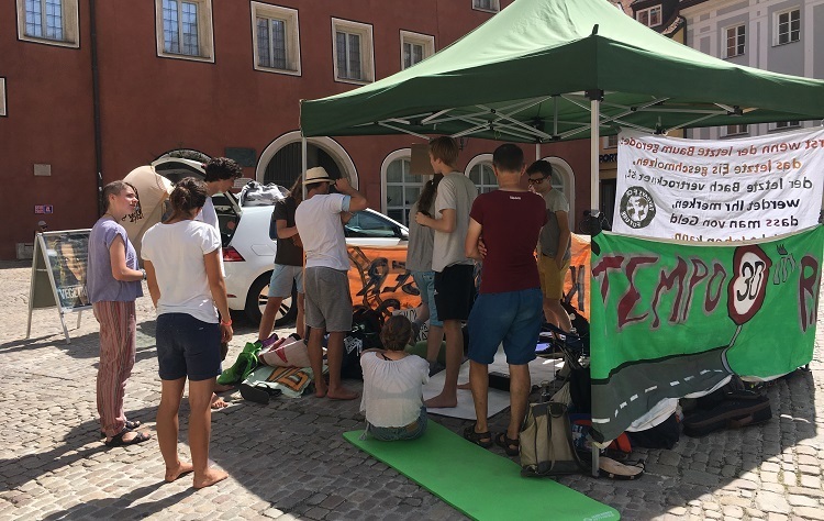 Rund 30 Jugendliche lagern dafür seit 12.05 Uhr auf dem Haidplatz und es sollen noch mehr werden – auch über Nacht. Sie vertreiben sich die Zeit unter anderem mit Musik, Yoga, Meditation oder Diskussionen. Geschlafen wird in Etappen – damit immer jemand wach ist.