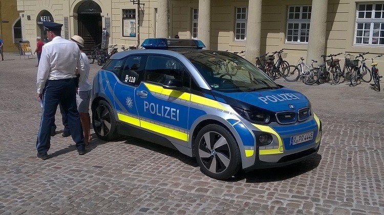 Auch die Polizei spielte mit – sie kam mit dem Elektroauto. 😉