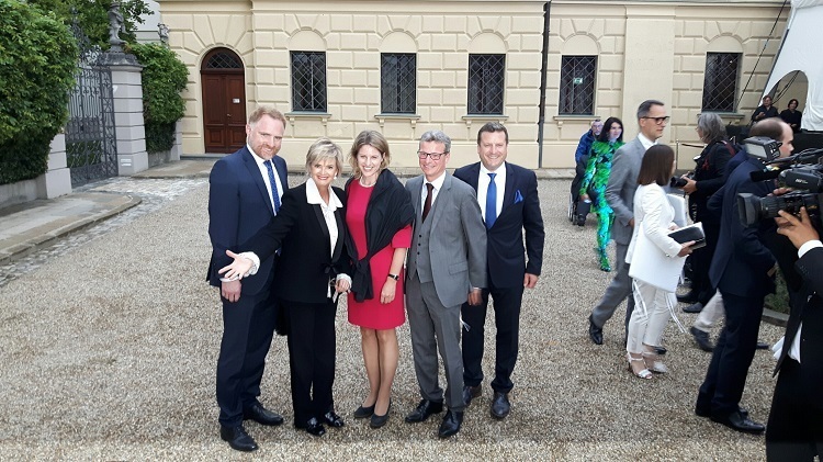 v.li.: Urs und Klaus Eder aus Donaustauf, ehemaliger Physiotherapeut der deutschen Fußball-Nationalmannschaft, Fritz von Thurn und Taxis mit Ehefrau Beata Bery.