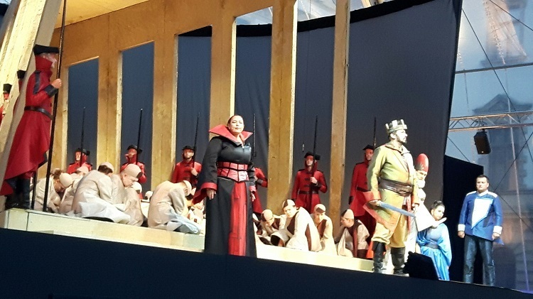 Am Freitag war Festspielpremiere mit Guiseppe Verdis Oper „Nabucco“. Startenor Jose Cura stand mit der Staatsoper Prag auf der Bühne. Während des ganzen Stücks regnete es keinen Tropfen. Zahlreiche Prominente aus Poltik, Wirtschaft und Adel waren der Einladung der Fürstin gefolgt.
