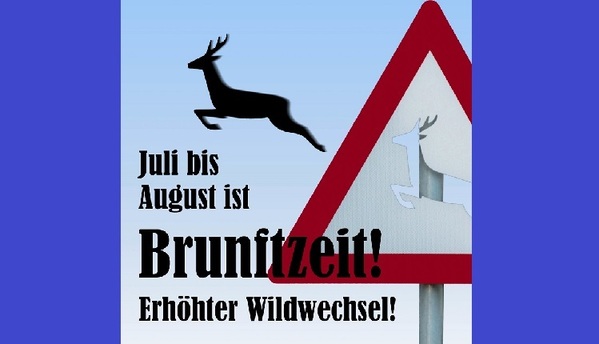 Besondere Vorsicht ist nun wieder für Verkehrsteilnehmer in der Dämmerungs- und Nachtzeit geboten: Von Mitte Juli bis August hat insbesondere das Rehwild Paarungszeit. Dies bedeutet, dass Rehböcke „im Liebesrausch“ den weiblichen Tieren oft über weite Distanzen hinterherlaufen und dabei auch liebestoll und unaufmerksam Straßen und Wege kreuzen. Damit geht natürlich auch ein gesteigertes Unfallrisiko einher.