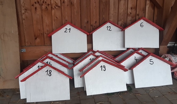 (Bild: 24 Holzhäuschen werden in dieser Woche entlang des Weihnachtswanderwegs in Grabitz aufgestellt. Darauf werden die Bilder gehängt)