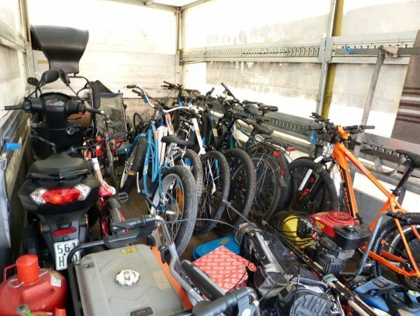 Polizisten haben in Straubing eine rekordverdächtige Diebstahlserie aufgeklärt, sie reicht bis 2017 zurück. Zwei Männer sollen dabei Sachen im Wert von fast 120.000 Euro geklaut haben, darunter hochwertiges Werkzeug, Fahrräder, Roller und sogar einen Krankenfahrstuhl. Auf die Spur der 30 und 38 Jahre alten Verdächtigen kam die Polizei nach Einbrüchen in ein Straubinger Fahrradgeschäft letzten Dezember, bei Hausdurchsuchungen tauchten dann die gestohlenen Gegenstände auf. ( Bild: Polizei Straubing )