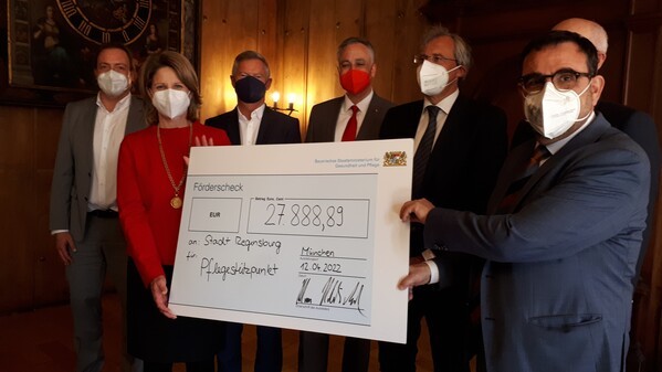 Im Endausbau soll es bayernweit über 60 Pflegestützpunkte geben. Für den in Regensburg hatte der Minister heute fast 28.000 Euro Anschubhilfe dabei.