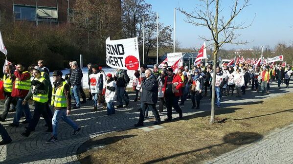 Etwa 700 Mitglieder der Gewerkschaft ver.di aus der ganzen Oberpfalz haben heute in Regensburg für mehr Lohn und bessere Arbeitsbedingungen demonstriert. Sie zogen am Mittag von der Uniklinik zur Universität und wieder zurück. An der Uniklinik Regensburg hat heute außerdem ein Warnstreik begonnen, er dauert bis Freitag früh. Durch Notdienstvereinbarungen ist sichergestellt, dass die Patienten nicht darunter leiden.