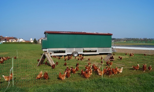 Ein Leben im Luxus. Das führen über 300 Hühner in Ponholz im Landkreis Schwandorf. Sie leben nämlich in einem mobilen Hühnerstall. Sieht ein bisschen aus wie ein riesiger Wohnwagen für Hühner. Einmal pro Woche wird er an eine andere Stelle geschoben. Die Hühner haben so immer frisches Gras vor ihrem Stall, in dem sie scharren und graben können. Und sind deswegen sehr glücklich, hat uns Lidwina Weilhammer gesagt. Auf ihrem Hof steht dieser mobile Hühnerstall. Bald kommt auch noch ein zweiter dazu. Die Eier gehen nämlich weg wie warme Semmeln – jetzt vor Ostern sowieso. Kaufen können Sie die Eier übrigens direkt am Weilhammerhof in Ponholz. Dafür gibt es einen eigenen Automaten. Sie müssen nur schnell sein.