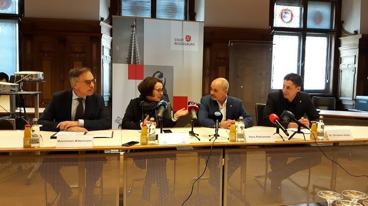 im Bild: v.li. Maximilian Mittermaier Kaufmännischer Betriebsleiter Arena Regensburg, Bürgermeisterin Gertrud Maltz-Schwarzfischer, Aufsichtsratsvorsitzender Hans Rothammer und Geschäftsführer Christian Keller, beide SSV Jahn Regensburg