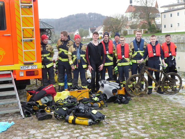 Bildunterschrift: Im Jahr vor Corona fischte die Kelheimer Feuerwehrtauchgruppe am Alten Hafen ein mit Algen und Muscheln verziertes Fahrrad aus dem Wasser.