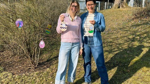 Eva Liedtke und Katrin Roiger von der Gesundheitsregion plus laden zum Ostereiersuchen ein; Pressestelle Lk Cham
