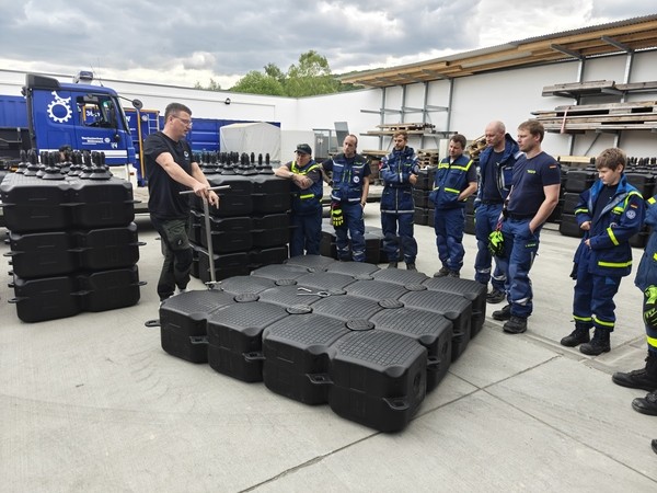 Der THW-Ortsverband Kelheim hat eine neue Ausstattung bekommen. Künftig verfügen die Helfer über zusätzliche 30 Quadratmeter Schwimmkörper aus Kunststoff, die sich wie Legosteine flexibel zusammenstecken lassen. Das Ganze heißt „FloatCube System.“ Damit kann das Technische Hilfswerk schnell und unkompliziert Stege, Brücken oder schwimmende Arbeitsplattformen bauen. Sie sind leicht und können mit mehreren Tonnen Gewicht belastet werden. Der komplette Satz kostet um die 20.000 Euro. Gelagert wird er in einem Rollcontainer. So kann er schnell und flexibel transportiert werden. Geplant ist, in den kommenden Jahren weitere THW-Ortsverbände mit den neuen Bausätzen auszustatten.