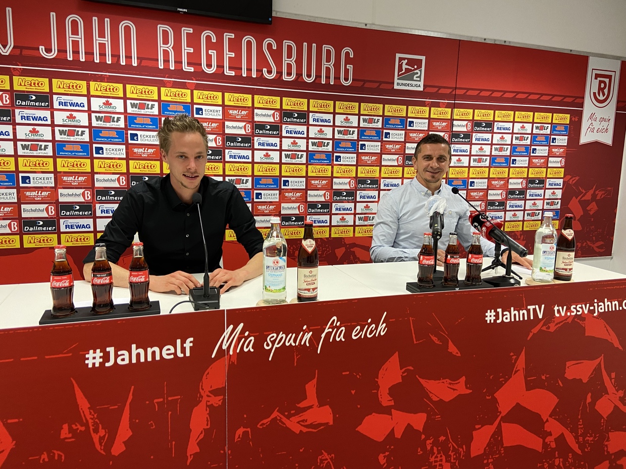 (Bild 2: Jahn-Pressesprecher Johannes Liedl (li.) und Jahn-Chef-Trainer Mersad Selimbegovic)