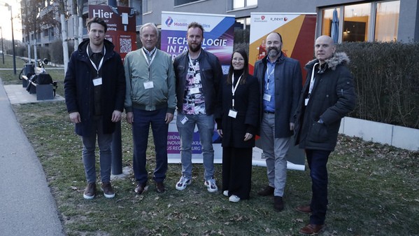 Die beteiligten Projektpartner: (v. li.) Philipp Berr, Stadt Regensburg, Wolfgang Sczygiol, Geschäftsführer SDP GmbH, Manuel Weber-Grill, E/E Projektleiter und Innovationsmanager SDP GmbH, Franziska Meier, Smart-City-Koordinatorin der Stadt Regensburg, Alexander Rupprecht, Geschäftsführer TechBase Regensburg GmbH, Uwe Pfeil, TechBase Regensburg GmbH, Manager des Clusters Mobility & Logistics.