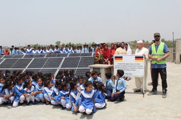 Bild zeigt Photovoltaikanlage, mit der Deckenventilatoren in einer Schule betrieben werden, die von der Kinderhilfe Afghanistan gebaut wurde.