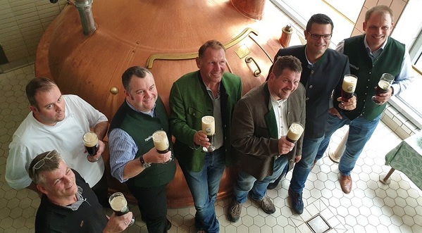 Bild: (rechts nach links) Geschäftsführer Martin Sperger (rechts) und Braumeister Albert Kellner (Mitte) mit einigen Wirten der Kneitinger Gaststätten.