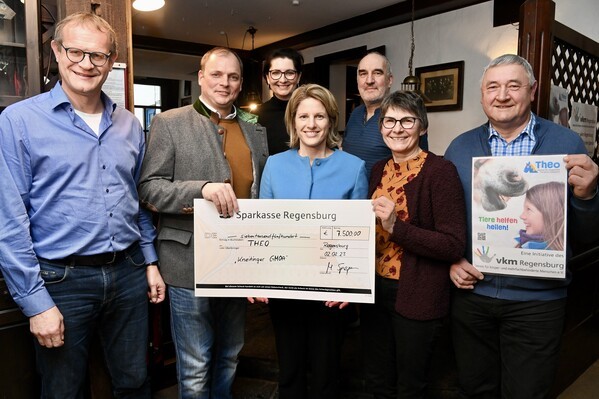Gutes Bier trinken und dabei einen guten Zweck unterstützen. Wer bei den letzten Bockbier-Anstichen im Kneitinger-Mutterhaus in Regensburg und im Aumerbräu war, hat zwei Fliegen mit einer Klappe geschlagen. Er hat Geld für das geplante Zentrum für tiergestützte Therapien THEO dagelassen. Heute wurde die Summe von 7.500 Euro an Theo übergeben, Kneitinger-Geschäftsführer Martin Sperger hat dabei die Herkunft der Summe erklärt: