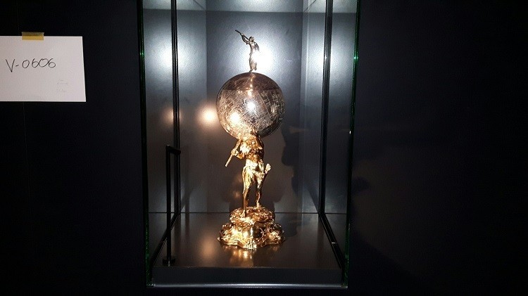 Der Erdglobuspokal ist eine Leihgabe aus den schwedischen Schatzkammern in Stockholm. 1632 hat ihn die Stadt Nürnberg dem schwedischen König Gustav Adolf geschenkt.