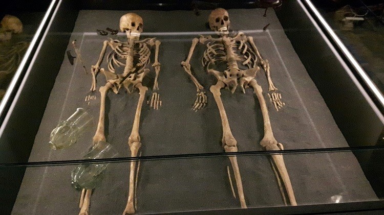 Die beiden Skelette haben schneeweiße Zähne, damals gab es noch kein Karies.